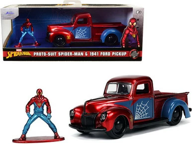 - 1941 Ford Pickup Truck and Proto-Suit Spider-Man Figurine – 33075 Jada Toys Model Vehicle